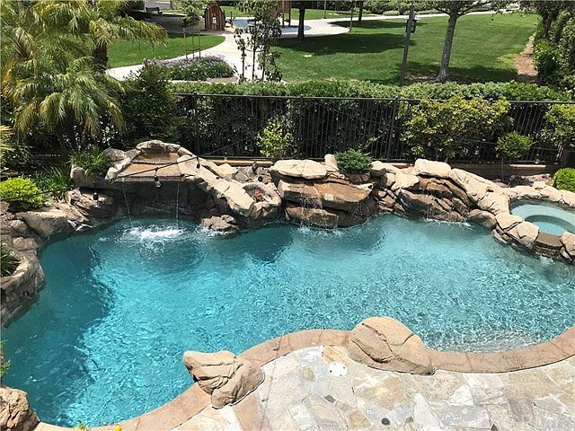 Beautiful elegant home in cu-de-sac with outdoor fireplace, private waterfall pool and spa. Upgraded marble floor downstairs. main floor bedroom and bathroom. Living room and family room have fireplace. Big open kitchen to the family room with black granite and maple cabinets, 6 burner counter-stove, double ovens, convection microwave and warmer and pantry. Stainless steel refrigerator, dishwasher, microwave and double ovens included. All hardwood flooring upstairs and tile in bathrooms. Laundry with sink upstairs.There are 3 spacious bedrooms, one bedroom suite with its own bathroom next to TV/family room upstairs. Master bedroom has balcony with pool and greenbelt view. Master bathroom has shower and oversize bathtub, her and his walking closet, RETREAT ROOM and IN HOUSE SAUNA ROOM.