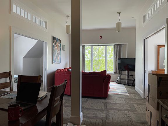 2BR furnished or unfurnished executive apartment available June 1 in the business section of downtown Blue Hill. One year lease term available. Very quiet and bright, with floor-to-ceiling windows and extra high ceilings. This high end building is professionally maintained with all services in place. Hot water and heat are included (worth thousands per winter). Pets are not allowed. Tenant is responsible for electricity and internet. First, last, and security due upon lease signing.
