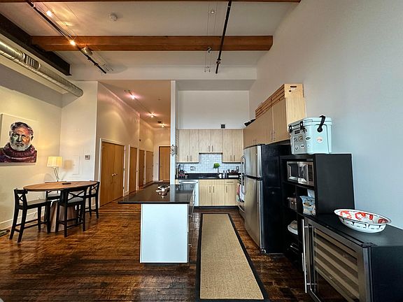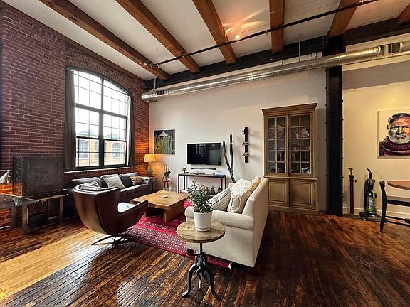 One of the premier units at "The Lofts at Westinghouse". Enter this sophisticated loft and you are greeted by soaring 12+ foot ceilings, original wood beams, and two enormous arched windows that flood the unit with natural light to create an incredible ambiance. The open concept living room features beautiful hardwood floors, exposed brick walls, and beautiful custom shelving ideal for entertaining. The modern and fully updated kitchen features all stainless steel appliances. The bedroom alcove area also has two oversized closets. The space comfortably allows for dining, living, and home office area. In-unit laundry, excellent storage space, and 1 parking space included + access to the building's fitness center and common outdoor space with fire pit complete this amazing loft! Just a short distance from the Readville Commuter Rail stop. Pets considered on a case by case basis.