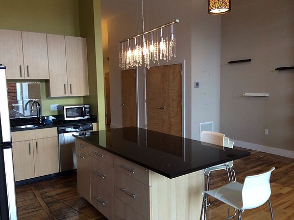 SOLD All one level in Loft building- 14 ' ceilings, in Hyde Park, near Dedham, Milton- 1 Bedroom Modern $1700. 1 great Parking spot, additional spaces available -Washer/dryer in unit!! no fee, no pets For August 15th... flexible for occupancy 1 Westinghouse Plaza in Hyde Park is a loft building outside of downtown Boston. Located in an industrial area just a short walk to the Readville Rail Station, 7 minutes to Rte 128 and about the same to Rte 1 in Dedham. This condominium is a renovated brick and beam style apartment that was at one time a fan factory during the 1940's. In conjunction with Hyde Park's flourishing art scene, the lofts at Westinghouse include 12 artist work studios & 62 live / work spaces, and an on-site Gallery. There are two, 10' arched windows allowing great natural light, a top of line kitchen with custom lighting and a custom built, large island that has huge storage drawers underneath for things like china and pots and pans, flatware. There's a wall and door added for a separate bedroom with a built-in custom clothing closet with organizers, a built-in shoe storage unit on the wall. Features Large double closet and one single closet in entry area Huge clothing closet in Bedroom Central air with programmable thermostat High efficiency in unit laundry, front loaders Remodeled bath from original with tons of storage Solar shades for western exposure to sunlight Built-in 7' tall bookcase divides room partially in half cable, internet ready luggage and extra storage above entry 1 car deeded parking next to front door Guest parking Tiny area for BBQ with trees and picnic table Around the block to picturesque Mill Pond part of Neponset River No Pets The elevator in the building was built to accommodate large installations, and the lobby will offer residents a location to exhibit their pieces. Contact Karen O'Brien 415-235-2983 NO FEE, owner is MA Broker. Flexible with occupancy date-inquire