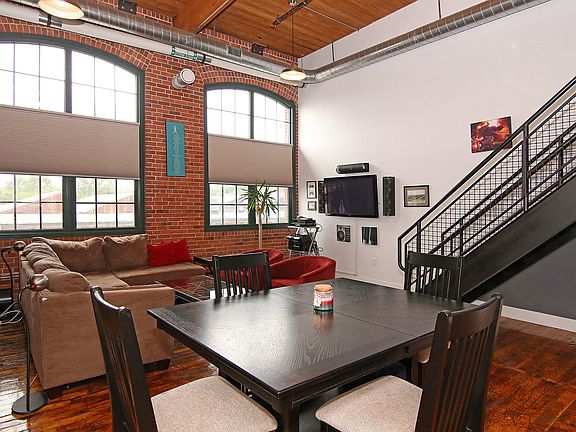 True loft in historic mill building featuring brick and beam architecture. Almost 1200sqft of living space with amazing upgrades that include custom-built bar, high efficiency HVAC system, and wireless controlled central air. This pet-friendly loft features 20-foot ceilings, palladium windows which provide an abundance of natural light, a mezzanine with upstairs sleeping area, and original hardwood floors. One deeded parking space with the option to rent a second. Building includes two gyms, mail room and telephone intercom system. Many upgrades have been made to the unit, please inquire. Open House Sunday 8/10 12-1:30PM.