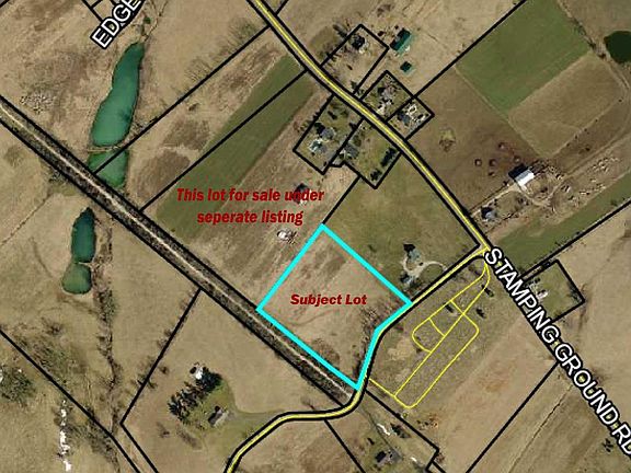 This 5 acre lot fronts on White Oak Rd, is in Stamping Ground city limits, and zoned for residential use (R1-C). It is currently used for agriculture. Electric service is KU and water is GMWSS. Buyer to verify with GMWSS and/or City of Stamping Ground for availability of city sewer service. Property has potential of being subdivided subject to approval of Georgetown Scott County Planning & Zoning. 10 acre lot with same zoning next to this property for sale in separate listing. This is Tract 2 on plat. One owner is a licensed real estate agent in state of Kentucky.
