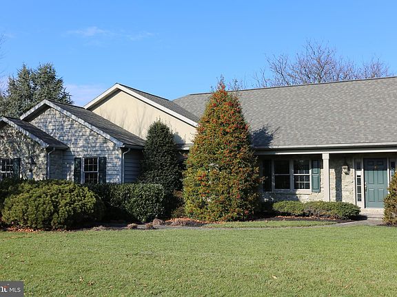 Welcome home to this spacious one floor living in this well maintained West Lampeter Township home. The highly desired Country Meadows Development is just minutes from shopping, dining and downtown Lancaster. Enter through the foyer and into the large family room. Both rooms have hardwood floors. The family room features a gas fireplace and built-in bookshelves. The cherry kitchen features custom cabinetry, granite counter tops, large center island with built in sink and buffet area. Enjoy the natural light and the cathedral ceilings of the breakfast / dining area off the kitchen. Dine in style in the formal dining room with tray ceiling, crown molding and corner cabinetry. The bonus space off the dining room offers an area for a formal living room or office. Follow the oversized hall into two bedrooms which share a full bath. The large primary bedroom has a walk in closet, private full bath with shower, jet tub and double vanity with make-up station. The laundry / mud room has it's own sink and plenty of storage space. The 3-car attached garage is off the laundry / mud room, has attic storage above. The basement under the main section of the home, has 9' ft. ceilings, a separate shop and (2) elevated storage areas. Schedule your showing today.