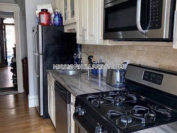 Stunning 4 bed 2 bath in Mission Hill Modern kitchen Stainless steel appliances Dishwasher Granite Counters Hardwood floors Tiled bathrooms In unit laundry 2 Floors of living space