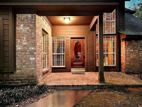 Charming 3 bedroom home on the golf course in Grogan's Mill! Close to Market Street, Waterway & concerts at the Pavilion! Covered front porch, hardwood floors, beam ceiling, abundant windows & storage throughout. Spacious kitchen w/SS appls, glass front cabinets & breakfast bar opens to sunny breakfast room; den w/brick fireplace; elegant formal dining; master retreat up w/sitting area; backyard has wood deck w/built-in seating, sparkling pool w/waterfall & spa surrounded by mature shade trees.