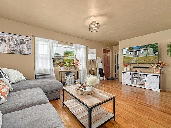 Welcome to your dream home! This delightful 2-bedroom residence features a spacious open floor plan that seamlessly connects the living room and kitchen, perfect for entertaining. Enjoy the warmth of hardwood flooring throughout, and bask in natural light streaming through the large picture window. Convenience is key with a first-level laundry room and off-street parking. The home's durable vinyl siding ensures low maintenance, allowing you to spend more time enjoying your new space. Located just minutes from highway access, you'll appreciate the ease of commuting and nearby amenities. Whether you’re a first-time buyer or looking to downsize, this home offers comfort and style in a prime location.