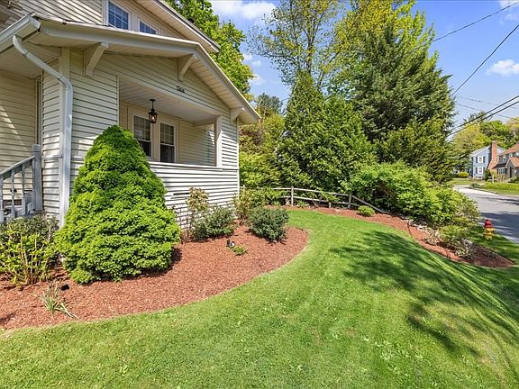 A delightful bungalow that is set upon a corner lot. This charming two-bedroom home has beautiful hardwood flooring throughout and numerous upgrades. Enter through the quant-covered porch and into the cozy living room. Here you are met with a fireplace with a wood insert, perfect for those cold winter days. The dining room is timeless with built-in cabinetry and chair-rail. Updated in 2023, the kitchen features newer s/s appliances, LTV flooring and a pantry. Upstairs you will find two sizable bedrooms with hardwood flooring and ceiling fans. The main bedroom has a bonus room attached. This room could be used as an office space or could even be transformed into a walk-in closet. A full modern style bathroom finishes off the upper level. Major system improvements include the furnace (2020) and water tank (2023). Outside you will find lovely landscaping, a storage shed, a firepit and plenty of space for entertaining. This is a must see property in a great location!