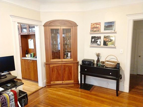 Bright 2 Bedroom philly style apt first floor apt, 2nd BR on 2nd floor) all updated and in nice condition! 1 bath Eat-in Kitchen, dishwasher, disposal, microwave. Dining Room Living Room Foyer Direct access to basement with washer/dryer, sauna and lots of storage Use of 4 car driveway (not shared) and garage with storage Shared use of front porch, back porch, back deck and fully fenced backyard Pets negotiable with good refs. No smoking. Close to Davis Sq/Porter Sq/Ball Sq, and Somerville Community Bike Path, a great apt available 6/1/21 Client pays full fee equal to one months rent to Re/Max Destiny