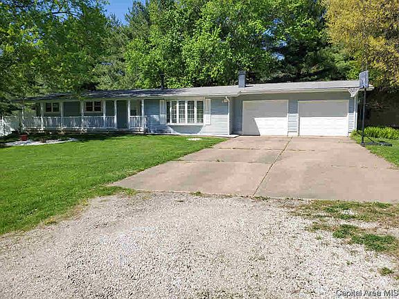 Country living just minutes west of Veterans Parkway in the Pleasant Plains school dist. Ranch style home 1 acre lot with shady trees and a couple of storage sheds. Large living room and dining area features a brick fireplace. Spacious kitchen with windows overlooking tree-filled backyard. Vaulted ceiling in the living room and bedrooms create a spacious feel. Attached garage for convenience on those cold & rainy days, plus more storage space. New roof with 50yr shingles in 2013. Large deck to enjoy summer evenings. Great value!