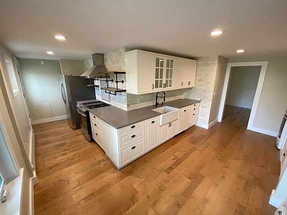 Newly renovated first floor 2 bed/2 bath condo unit in a multi-family house just minutes away from Arlington Centre, bus lines, cafes & restaurants. This fantastic unit features: - Two large bedrooms with closet, master bedroom with en-suite bath - Chef's kitchen with granite countertops, high end s/s appliances, dishwasher, vent - Hardwood floors throughout, high ceilings, lots of windows and sunlight, gas heating - Large private deck and shared backyard for grilling - Great views - In-unit laundry - One non-tandem off street parking - Pets are negotiable, breed restrictions apply