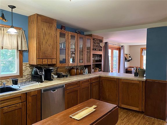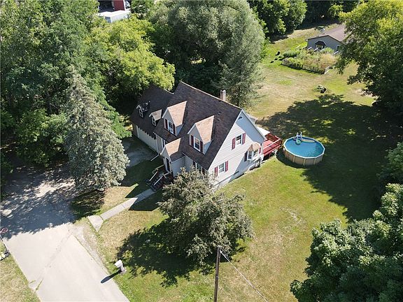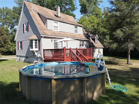 Off the beaten path in the Village of North Hornell is a cute 3 bedroom, a full bath Cape Cod home. Enter the front of the home into a small foyer and next, is the living room with a custom built wall of cabinets and shelving. The recessed lighting over the gas fireplace gives soft illumination. Nice hardwood floor covering! The rest of the main floor features a bedroom, and a large, eat-in kitchen. There are lots of custom cabinets with some interesting characteristics! The counter top is Travertine tile. There is a bay window by the table area and a sliding door to the freshly stained deck. Refresh yourself in the 16ft above ground pool! The wide stairway to the second floor is constructed of the same beautiful hardwood that is in the living room. There are two bedrooms in a full bath up here. The primary bedroom is absolutely huge! Room for a king size bed and an area for office space. There’s lots of storage closet space and there’s even a loft for storage. The full bath is updated with ceramic tile, modern colors & separate tub and shower.