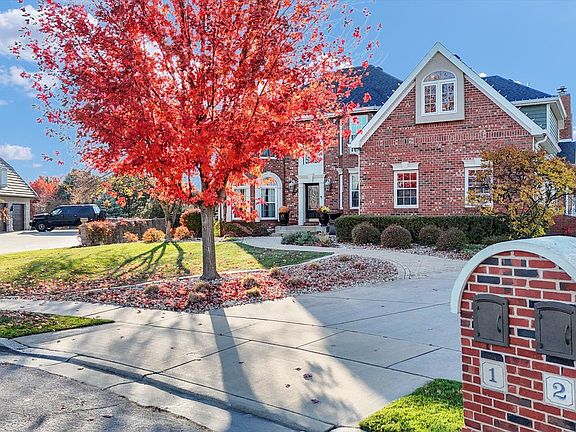 Welcome to 1 Windsong Way! An elegant, one-of-a-kind 5-bedroom, 4.5-bath walk-out Tudor perfectly situated on a peaceful cul-de-sac with private lake access. Resting on a half-acre lot with professional landscaping with an abundance of outdoor living space, this home offers resort-style living with a 24' x 48' in-ground pool, private hot tub area, and an expansive wraparound deck-ideal for entertaining and relaxation. Step inside to discover 9-foot ceilings, a formal dining room and living room, and a spacious eat-in kitchen featuring a large center island with seating, quartz countertops, a wet bar, and updated dishwasher and microwave (2024). The family room impresses with a vaulted ceiling, custom built-ins, and a cozy fireplace-perfect for winter nights. A sunlit four-seasons room with outdoor access provides a warm, inviting space year-round. The private office with custom-built-ins, conveniently located off the kitchen, offers a quiet space for work or study. Upstairs, the primary suite is a true retreat with its own fireplace, tray ceiling, and a spacious walk-in closet with built-ins, wall safe, and additional storage. The upper level also includes an en-suite bedroom and Jack-and-Jill bedrooms, all with new carpet (July 2025). The walk-out basement expands your living space with generous recreation areas and two large storage rooms with built-in shelving. New flooring was added in 2021. Additional features include first-floor laundry with custom cabinetry and shelving, three-car side-load garage with ample guest parking, new roof and pool heater (2023), new HVAC systems (2022), new water heater (2021), and irrigation system. This elegant and meticulously maintained home combines timeless Tudor charm with modern amenities, all in a premier location. Don't miss the chance to make this exceptional property your next home!