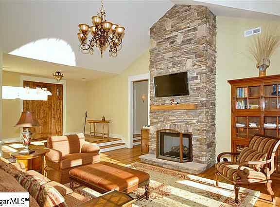 This lovely, well-designed home features an open floor plan and well appointed finishes...all on one level!! Extensive upgrades and landscaping were added by the current owners. The great room has a dramatic vaulted ceiling, hardwood floors and floor-to-ceiling stone fireplace with flat screen television hook up above the mantle. The spacious, state-of-the-art kitchen, adjoining dining and keeping rooms provide a comfortable gathering place for friends and family. The roomy master suite is a true retreat with its vaulted ceiling, large bay window and luxurious master bath, complete with garden tub, large shower, his/her vanities and custom closets. The main level also has two large guest bedrooms and bathrooms. The bonus room above the garage is perfect as a recreation room or home office. The screened porch and viewing deck off the main level living spaces overlook the mountains and Terry Creek fitness trails. Convenient to all Cliffs Valley amenities, this great home is perfectly located for those seeking the active Cliffs lifestyle.