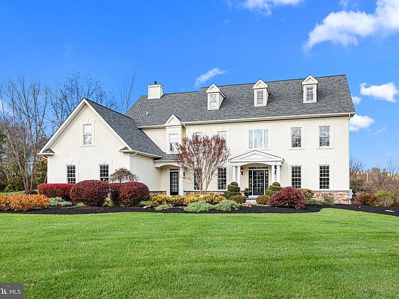 Two beautiful holly trees grace the driveway entry to this palatial Upper Makefield estate on three luscious acres just outside of New Hope and Peddlers Village – and located within the award-winning Council Rock School District! Situated on a cul-de-sac of elite homes, this location is second to none and truly speaks to living in the ‘heart’ of Bucks County! Artful hardscaping leads to the covered front porch and into the dramatic foyer of this home complete with marble floors and a turned staircase! The living and dining areas at the front of this home feature lighted coffered ceilings, creating a warm rich ambiance to welcome guests into your home. The main level truly has an open floorplan with hardwood throughout, a bright white updated eat-in kitchen, gourmet appliances (Sub Zero, Gaggenau, Thermador and Bosch),  a desirable center island, and a dual-sided stone gas fireplace! A wonderful year-round sunroom enlarges this space and encourages relaxation while watching nature’s show of colors change from season to season! Atrium doors lead to the wrap-around deck for enjoying barbecues and al fresco dining during the warmer months. The two-story family room with its wall of windows allows for conversation with friends and family while enjoying libations before dinner and taking in the stunning backyard oasis! Just off the family room, you will find a powder room and the office (or in-law bedroom) with ensuite bath! This room features built-in cabinetry and French doors for privacy with plenty of windows for an abundance of natural light. The main level includes a convenient front entry door to a large cloakroom – perfect for the family coming home from activities to have a drop zone for jackets, backpacks, and shoes. In addition, there is a huge laundry/mud room with side-entry. The upper level boasts a magnificent owners’ suite with volume ceilings, two-sided gas fireplace, custom-designed built-in cabinetry, and expansive owners’ bath with walk-in closets and organizers. This suite offers a spacious outdoor deck for reading, enjoying your morning coffee, or soaking in the sun! The upper level also features hardwood floors throughout! There are three additional bedrooms – one with an ensuite (guest) bath and the other two bedrooms share a Jack and Jill bath! All bedrooms have walk-in closets with custom-designed shelving! The lower walk-out level of this amazing residence offers an unbelievable recreation space and another full bedroom and bath! Your extended family can visit and enjoy fabulous accommodations such as a second media/family room, workout room, a third two-sided gas fireplace, private office, and an outstanding wine tasting room with wine cellar for displaying your private collection! The outdoor oasis is astounding with an inground swimming pool with hot tub, two Koi ponds, fire pit area, and a gazebo – making the sprawling three acres at 1 Windy Hollow Road a ‘staycation’ resort! There are so many special details, you must come and view, in person, to appreciate all this home has to offer! You will not hesitate to make this extraordinary sanctuary yours today!