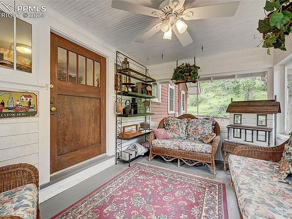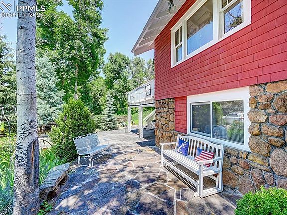 This one-of-kind home sits at the end of the most peaceful cul-de-sac in Cheyenne Canon near the world-renowned Broadmoor Hotel. The lot is spacious with many mature trees and scrub which provide excellent shade and privacy. The landscaping has been meticulously cared for with a turf area, large deck and even a winter tubing hill. You enter the home through the enclosed patio which will make you feel as though you are deep in a Rocky Mountain Forest as you listen to the breeze through the trees and the sounds of Cheyenne Creek in the distance. Wildlife is abundant with squirrels, rabbits, and deer, and even an occasional visit by a brown bear. The main room is adorned with beautiful maple hardwood floors and a stone fireplace. The kitchen is spacious with a walkout to the large deck and opens into the family room area. The primary bedroom includes a large closet and full-sized bathroom. The upper-level loft includes space for a studio, and a large bedroom with an attached half-sized bathroom. The lower level includes two additional large bedrooms and a beautiful ¾-sized bathroom. You will also find the laundry room and a large workshop on this level. The location is hard to beat with great access to all of the outdoor recreation opportunities afforded by Cheyenne Canon and the unmatched amenities provided by The Broadmoor. This home has quite the history as well. It has been said this home was a speak easy for The Broadmoor Hotel during the Prohibition Era. Access from the hotel was gained through a private tunnel which exited on this property just above the covered patio. Rumor has it, that all the booze was stored under the patio.