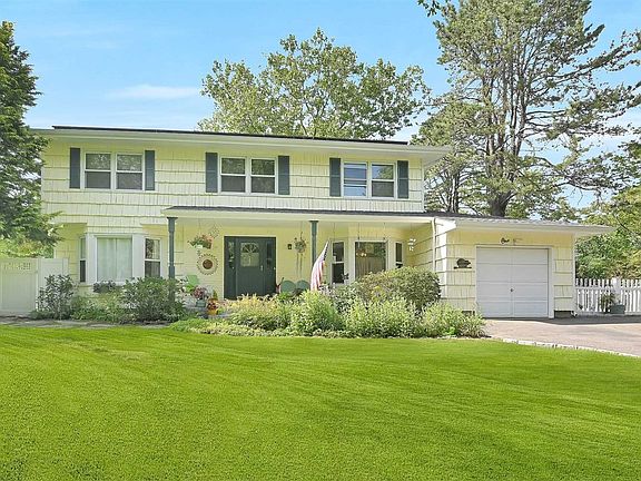Warm Entry Foyer 4 Bedrooms including Large Primary Bedroom with en-suite walk in closet and second closet, 3 Baths including en-suite, 10 year old Eat in Kitchen with Italian Tile & Quartz countertop, Energy Star Applicances,Cozy Den opened to kitchen with corner fireplace & sliders, Second Den can be used as Mother-In-Law suite or Formal Living Room, Formal Dining Room with French doors & Gleaming Hardwood Floors lined with Brazilian Cherrywood, Full oversized unfinished basement, 2 Zone Central Air, 6 Zone In-Ground Sprinklers, PVC Fence, 11 Year Old In Ground Pool with New Pump, 10 Year Old Roof, 2013 New Septic System, Most windows replaced, Solar Panels owned. $903.66 Star Exemption. Close to Major Highways, Schools & Colleges, Tanger Outlet. Parks, Hospitals & LIRR.
