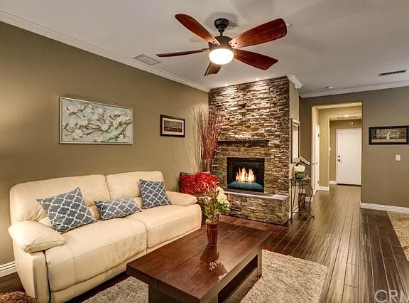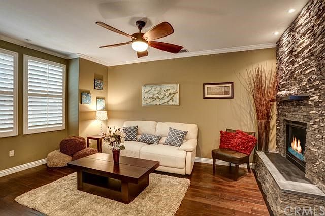 Located across from Founders Park, This upgraded 3 bedrooms, 2.5 bathrooms with over 1600 sq ft of living space. Marble floors + crown moldings on ground floor entrance. This extends to maple hard floors throughout Dining room & Living room which features stacked stone fireplace for a classy ambiance. Living room also upgraded with custom entertainment center and plantation shutters. The Kitchen displays stainless steel appliances, travertine, windows for natural light, and plenty of counter space. Downstairs Powder room with wainscoting and marble sink. New carpet throughout upstairs. Enjoy the over-sized master bedroom with balcony. 2 secondary bedrooms, secondary full bath w/tub & separate upstairs laundry room with plenty of linen storage. Direct access 2 car garage finalizes this home. Walk to all community events and award winning schools. Ladera Ranch boasts several community pools, pocket parks, nature trails, community events, Water park & Skate park just to name a few of the benefits.Require credit check, employment & asset verification. HOA paid by owner. Internet included.