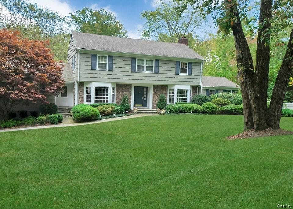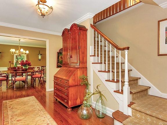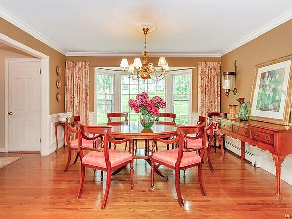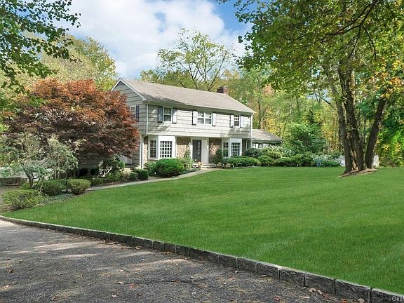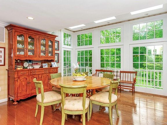 A truly unique setting on two private level acres at one end of a double cul-de-sac street. This four-bedroom Colonial features an expanded and renovated eat-in kitchen with high ceilings and a wall of true-light windows leading out to a deck that spans the full length of the home. Closest to the kitchen is a family room with built-ins, a fireplace, French doors to the deck, and a powder room. The living room has front and back bay windows that lead to a sunroom with built-ins, a wood-burning stove, and French doors out to the deck. The second-floor master bedroom has a tray ceiling, dressing area with two closets and a master bath. In addition, there are three additional bedrooms. The lower level is finished with a playroom, full bathroom, separate laundry room all with access to the back yard. The attention to detail throughout the home includes hardwood floors, extensive trim work, crown moldings, pocket doors, and central air.