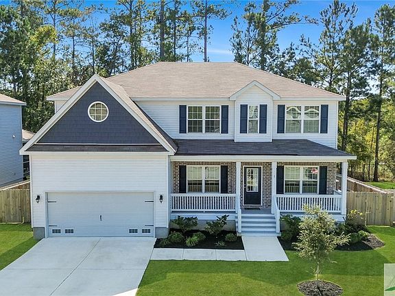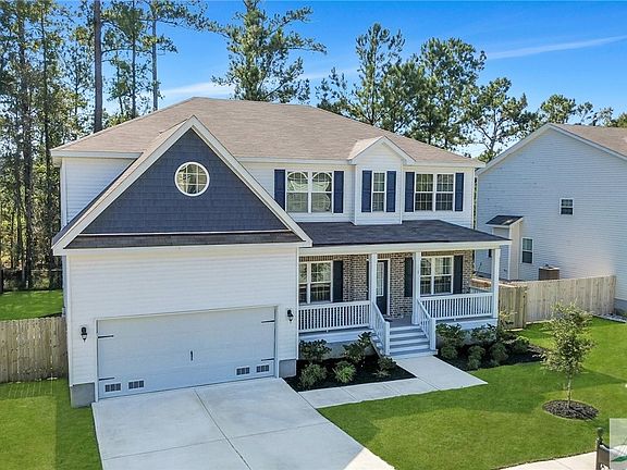Experience Marshside living in Southern Woods! Enjoy the weather on your rocking chair front porch and soak in the beauty of the neighborhood. This spacious two-story home offers 5 bedrooms and 3 baths. Enter through a generous mudroom off the garage, leading to a gourmet kitchen equipped with stainless steel appliances, granite countertops, white cabinetry, and a large island with pendant lighting. The main floor also includes a formal dining room with crown molding and wainscoting, a cozy study, a bedroom with a full bath, and a covered screened patio in the backyard for private relaxation or entertaining. Upstairs, the owner’s suite offers a tray ceiling, sitting area, dual walk-in closets, and a luxurious bath with comfort-height cabinets, dual granite vanities, a spacious garden tub/shower, and a private water closet. A two-car garage completes this beautifully designed home.