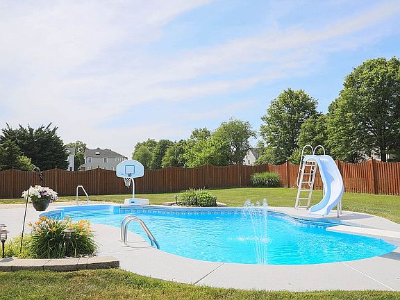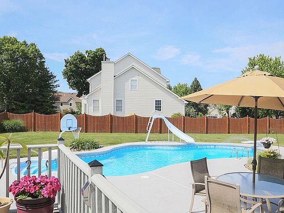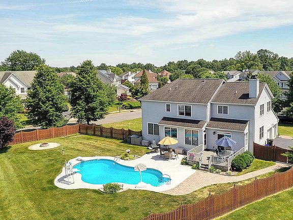 PICTURE PERFECT center hall colonial located in a beautiful tree lined community offers the perfect blend of space, character, and charm! This stunning home sits on a gorgeous corner lot overflowing with curb appeal and a cozy front porch perfect for summer afternoons. Inside features gleaming hardwood floors & tons of NATURAL SUNLIGHT with generously oversized rooms and an amazing eat in kitchen! The master bedroom features a vaulted ceiling, walk in closet & huge en suite with gigantic soaking tub! Rounding off the interior is a large finished basement with additional space to have fun. A FULLY FENCED yard w/ meticulously maintained grass, fire pit and heated pool is perfect for entertaining & offers privileged access to sun deck, swimming, and RESORT STYLE relaxation.