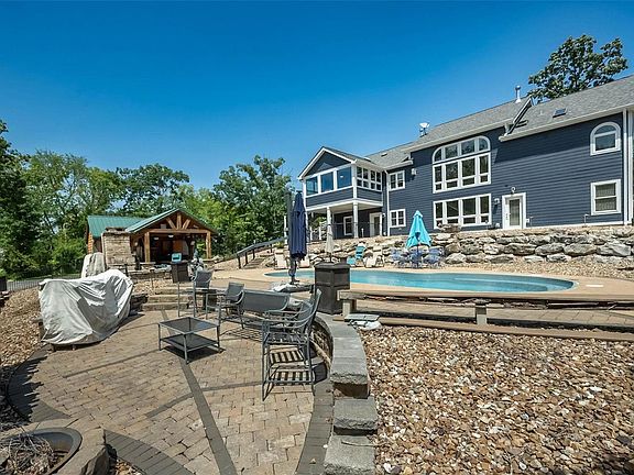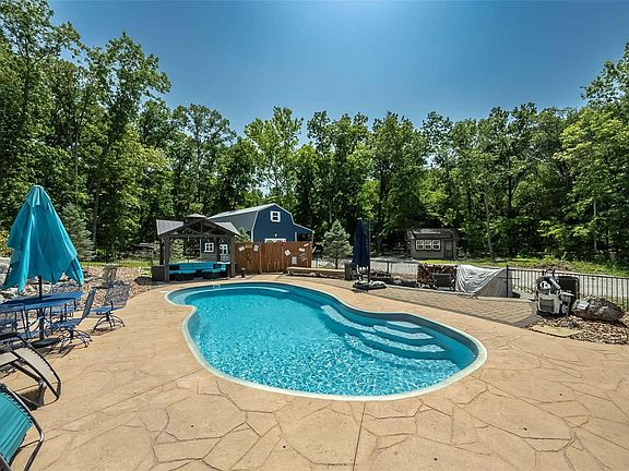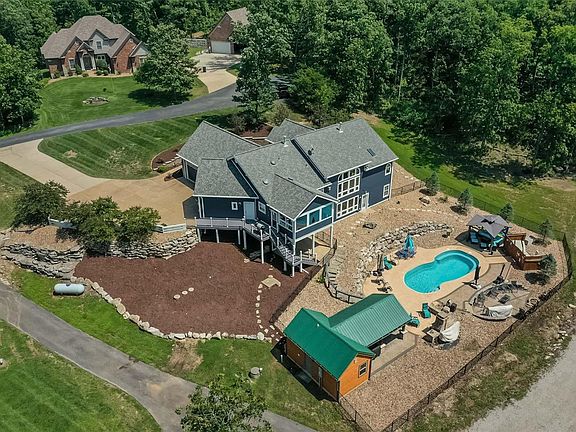 Incredible estate in Timberland school district is an entertaining and family paradise! Nestled on 3 wooded and private acres, gorgeous main house features custom brick/stone front, 4 car garage, 9 ft ceilings on both levels, 3 fireplaces (1 outdoor), LVP, hardwood and travertine flooring, chef's kitchen with Labradorite countertops, custom backsplash and state of the art appliances! Resort style backyard includes 18x36 kidney shaped salt water heated pool, pool house with outdoor kitchen and bar with concrete countertops, full bath and laundry which makes for the ultimate spot for parties and family gatherings! 40x20 two level workshop is wired with 200 panel, full HVAC and drywalled 2nd level! Additional features include gun range with custom creek-covered bridge, St Louis Closet Co in multiple closets and pantry, new Hardie Board siding, roof, soffits and facia with built-in lighting (2020), stocked fishing pond and so much more! See attachments in MLS for all updates & drawings.