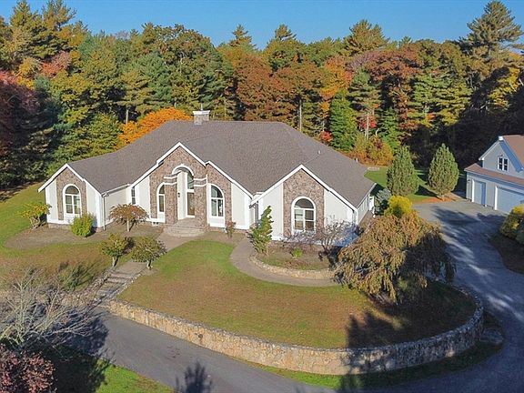 Introducing a stunning custom estate set on over 6 acres in Dartmouth. This beautiful property offers 4 bedrooms and 4.5 baths, including a luxurious master suite with a spa and inviting fireplace. The formal living room provides an elegant setting for entertaining, while the gourmet kitchen, complete with a wet bar, is a dream for culinary enthusiasts. Additional features include an attached 2-car garage and a detached 3-car garage with an upper loft/office. The expansive, above-grade lower level adds even more space, perfect for an in-law setup. Encircled by charming stone walls, this architectural gem is sure to leave you in awe! You will appreciate all the work that has been done to this property such as roof, interior paint, finish detail, shinning re-finished hardwood floors and large amounts of space. This is a once in a lifetime opportunity to own this beautiful home! Don't wait on this one!