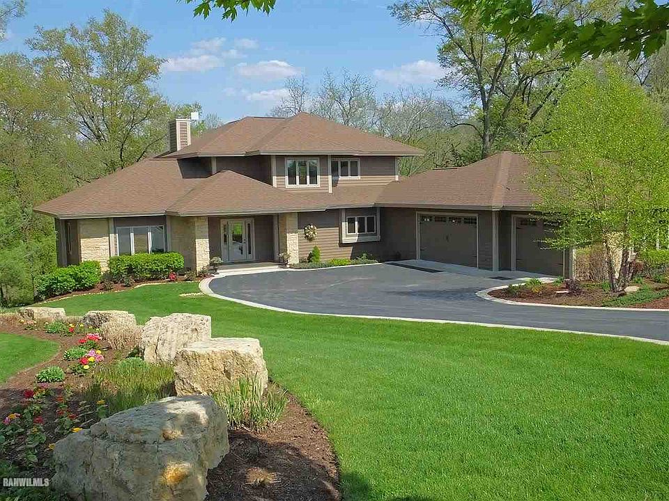 Luxury, wooded privacy and on the golf course is what you will find in this magnificent home. Located on a cul-de-sac lot with views of 4th green on the South Course. Prairie-style 4BR, 4.5BA home with large oversized three-car attached garage. It is the interior trim package and superior hard woods that set this home apart from the others in this bracket. Large loft, 2 covered porches and a wonderful sunroom add to the year round living. Upgrades include but not limited to: Ash trim, two stone fireplaces, site-finished oak hardwood floors, travertine marble, Marvin windows, granite countertops in kitchen with wine cooler and custom cabinets. Cathedral wood clad tray ceilings. Main floor living with an open concept that joins the kitchen, dining, living area, porch & deck into a flowing entertainment environment for family and guests. One-of-a-kind custom designed "grasses" iron inserts on stairs. Main floor master bedroom with walk-in closet (custom cabinets) and beautiful master bathroom complete with steam shower and whirlpool tub. Loft on the upper level. Lower level has in-floor radiant heat, wet bar in family room with Dubuque stone direct vent fireplace, boxed paneled ceiling, and opens to an aggregate concrete patio. Large storage area in lower level. Whole house audio system with centralized keypad control units. Professionally landscaped for low maintenance including an irrigation system for the bedding plants. Garage includes radiant heated floor with epoxy coating and a concealed storage room that hides all the yard equipment. The home is being sold unfurnished, however all furnishings are easily negotiable on a separate bill of sale outside of closing. Sale subject to GTA Document Transfer Fee.