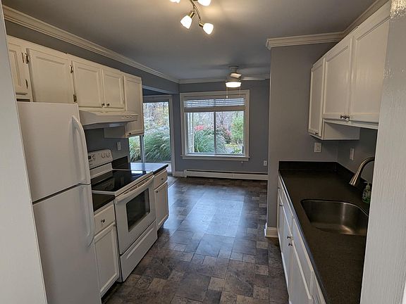 Very conveniently located just off Route 3 with quick access to highways. One-half mile from Shop-Rite shopping plaza. All new light fixtures, window blinds, solid wood doors, ceilings, trim and hardware, electrical outlets and switches. Quiet, bright space with large windows. Dishwasher, garbage disposal and large pantry. Washer/dryer and dedicated storage space inside building on same level. Two in-wall AC units. Small brick patio with natural grasses providing privacy screen for garden area. Ground floor end-unit with back entrance opening directly to the outside. Close to plenty of well-lit parking. Community pool and community room. Walking path around complex. Applications accepted through Zillow. Included in rent: heat and hot water, snow removal, lawn maintenance, trash removal/recycling. Tenants pays electric (has run approx. $35/month) and credit check. No smoking. One dedicated parking space and plenty of convenient visitor spaces.