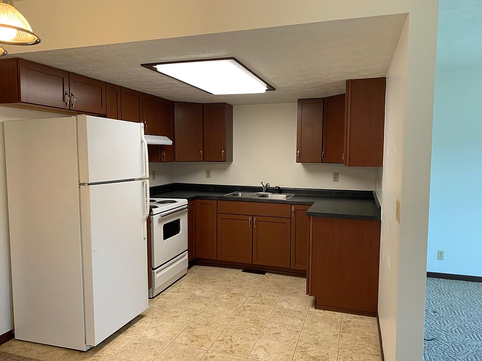 1bedroom 1 car unattached garage with opener Newly remodeled kitchen Comes with refrigerator & electric stove. Coin operated laundry facility on location. Furnace & central air units 3 years old. All lawn and unit maintenance included. 1 year lease *2 person occupancy limit* No smoking No pets Rent includes water, sewer, and garbage.