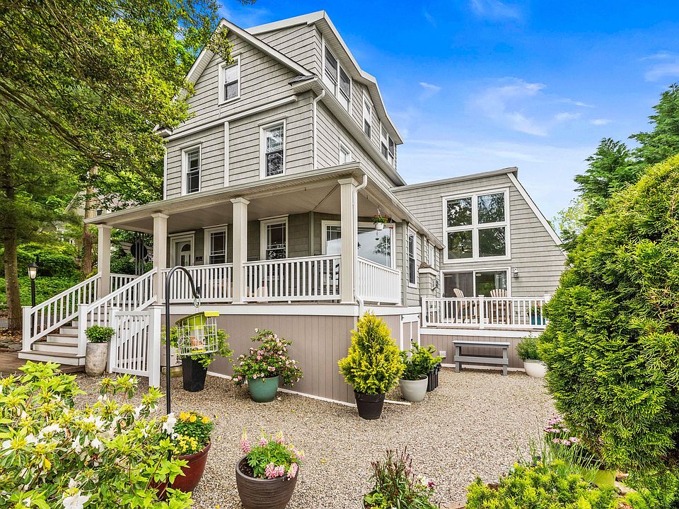 Total Gem! Beautiful water and NYC skyline views. Lovingly maintained colonial with large addition. Addition can be used as a family room, bonus room, 1st floor master suite, etc... Newer siding, windows, and roof. New 6+ zone energy efficient heating/AC system and newer tankless H2O heater. Open flowing floor plan with large windows and lots of natural sunlight. Eat-in kitchen with granite countertops, ss appliances, & large pantry. Between the porch and decks there are many areas to sit and enjoy the gorgious water views. The serene grounds are meticulously maintained with mature landscape. 1.2 miles to NYC trans on the Seastreak. Close to other NYC trans, major roads, beaches, restaurants, center of town, entertainment...