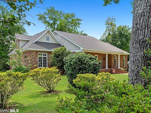 Welcome to Pat's Acres, a well-established neighborhood in Foley. This custom-built 3-bedroom, 3-bathroom home offers a warm welcome with its antique leaded glass front door and 8' mahogany doors. Inside, you'll find hardwood floors, a travertine fireplace in the great room, a butler's pantry, and more. The main-level primary bedroom boasts 2 cedar-lined walk-in closets and an adjoining bathroom. The spacious laundry room features a utility sink and ample storage with a built-in desk. The third bedroom and bathroom are located on the 2nd floor, where you'll also find a convenient walk-in floored attic storage space for your holiday decorations. Step outside to the back covered patio, which overlooks a beautifully landscaped fenced yard. All appliances are just 2 years old, and the roof was replaced in 2020. Additional features include a 4-inch well and sprinkler system, plantation shutters throughout, and solid brass door knobs and hinges by Baldwin. This unique home is ideally situated, just 10 miles from the stunning AL Gulf Coast Beach and 3 miles from the Tanger Outlet Mall. Don't miss the opportunity to make it yours.