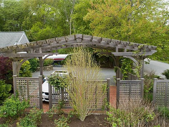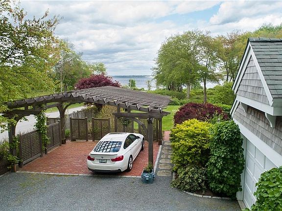 Classic Shingle Style cottage designed by award winning Architect Ron DiMauro for the current owners, this lovely home is sited on a 1.22 acre corner lot to take advantage of the views of the East Passage of Narragansett Bay, and beautiful sunrises. The private setting offers lovely mature plantings for privacy, tranquility, and relaxing on either the deck or patio while watching the boats sail by. As your enter the home your eyes are drawn to the lovely views beyond, the 1st floor offers a cozy sitting room,open living, dining area, and a chef's kitchen including 48" Viking double oven/stove, large island, and breakfast nook with gas fireplace. additionally there is a powder room, large pantry,and 1-car garage. The custom open staircase leads to the 2nd floor which provides a spacious master bedroom suite w/fireplace, bright bath w/jetted tub, and separate shower, radiant floor heating, large closets. The guest bedroom has a private balcony to enjoy the breezes off the water, complete with en-suite bath. Laundry is located in the hallway closet convenient to the bedrooms. The 3rd floor space is currently an artist studio with wonderful light, with an abundance of storage. The grounds provide a sanctuary to enjoy nature, overlooking woodlands, and down to the water. Several garden beds, patio area, and lush lawn. A custom trellis style pergola provides a carport / shade area for 2 vehicles. Deeded water access is just steps away. Recently received approval for 3-bed septic.
