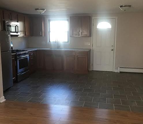 Newly renovated townhouse located on a quiet dead-end street...unit was gutted to the studs and fully renovated with new hardwood floors, kitchen with new cabinets, stainless steel appliances, open floors plan, dining area and living room, stairs leading to two bedrooms and full bathroom on the second floor, parking for two cars. First and last month required Tenant to pay for one month broker's fee