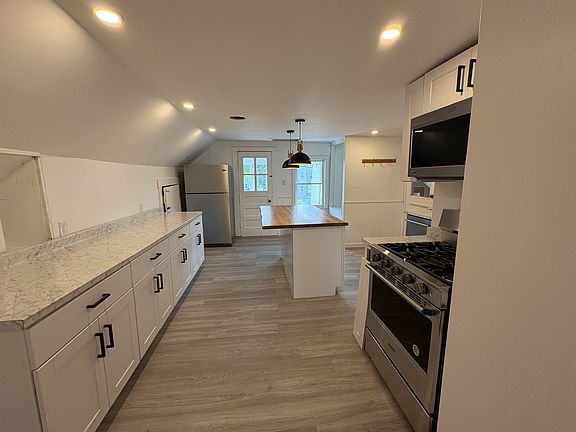 Freshly renovated 2 bedroom 1 bath conveniently located in the heart of Easthampton. Brand new Maytag appliances included (Refrigerator, Gas Stove, Dishwasher, and Microwave) Large live edge island with seating up to four. Loads of cabinets and counter top space as well as a pantry. Washer and dryer hookups conveniently located on the same level. Features hardwood and LVP flooring through out, three season porch and loads of storage space. Two off street parking spots. Seconds from Eastworks building, bike bath, Mill pond and much more. Come see this unit before it's gone! Tenants responsible for heat, electric and internet. Cats and small dogs considered No realtor or application fee. 1st and Security deposit (total of $3600) required after application as been accepted to secure lease. Available June 1st First available showing Saturday May 31st Call/text/email Jonathan to setup a showing (Potential tenants beware this unit is on the third floor and therefore has lengthy stairs to get to the apartment) Owner pays for water, sewer, trash, landscaping, and snow removal. Renters are responsible for heat, electric and Internet. No smoking allowed.