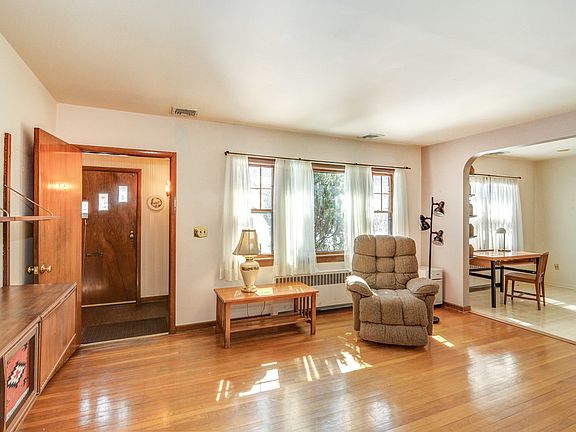 Enormous curb appeal will welcome you to this expanded home, boasting 4 bedrooms and 2 1/2 baths. The entry foyer leads to a lovely living room and an open concept dining room and kitchen. Two comfortable bedrooms with plenty of closet space, a full bath, and a charming brick 3 season porch complete the first level of this spacious home. Upstairs, you will be greeted by a skylight in the hallway leading to 2 bright, oversized bedrooms, a full bath, and a powder room! The lower level is partially finished with enormous space and potential with new windows, soaring ceilings, plumbed for a full bath and an entrance to the attached garage. Central air, newer furnace, hardwood floors and more. An unusually large home - approximately 2160 square feet (according to tax records). The location can't be beat - close to schools, houses of worship, shopping and NYC transportation.