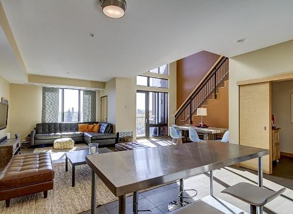 Great Eat Street location! Showcase, urban 2 story, Arts Quarter Loft with open floor plan featuring high ceilings and south facing, 2 story windows providing an abundance of natural light. Features porcelain plank flooring, center island kitchen with stainless steel, large walk-in pantry, separate dining area, private balcony with gas grill, laundry and underground heated parking. Great restaurants & entertainment right out your door!, Directions At the corner of Nicollet Ave & 26th St E