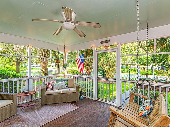 Enjoy all that Island life has to offer in this charming beach cottage, within walking distance to the ocean. New roof installed in 2018! Just two blocks off the beach, this 3-bedroom, 2 bath home is perfect for enjoying the outdoor life, complete with a screened-in front porch & a white picket fence. This home boasts a beautiful bright kitchen with upgraded light fixtures, plenty of cabinets, SeaStone oyster shell kitchen island, a double oven, crown molding and gorgeous hardwood floors. The living room is perfect for relaxing after a long day at the beach, with plenty of windows & a beautiful built in media center. Separate dining provides the perfect spot to entertain family & friends. 3 spacious bedrooms with walk in closest systems. Upgraded bathrooms with island inspired shiplap and a tiled shower. Huge fenced in yard, large deck and a storage shed/workshop. The screened-in front porch is large enough for a dining table, perfect for enjoying dinner outdoors on a Summer night. Mature, tropical landscaping creates an island oasis you can call your own. Don't miss this incredible opportunity for island living at it's best!