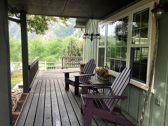 Classy home overlooking the Salmon River and Valley with fantastic architectural features. Classic country kitchen with wood beam counters opens to the living room with cozy propane heater. Large bedrooms with nice sized closets. Master bedroom has a private entrance to the covered deck with fantastic views. Formal dining area with French doors that open out to the river views. Large open room for a family game room or just a great place to entertain guests. Small cabin on property currently used for storage could be made into a nice guest quarters or Cottage Industry business. Property has mature landscaping and many perennials. Room to park an RV (no hookups) or large camp trailer. Perfect home for you year round or make it a summer home. Call today for a viewing. Can be purchased with an additional 3 acres for $295,000 for the whole property with the house.