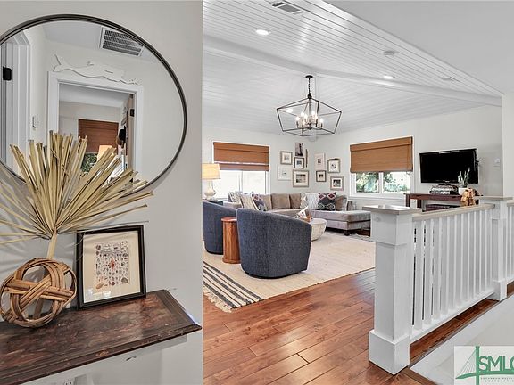 Nestled on a serene, double lot, this charming Tybee Island cottage is just steps to the Atlantic Ocean with private beach access shared by only six properties. A sprawling, fenced yard adorned with majestic live oaks sets the stage for outdoor gatherings, boasting two distinct patio areas ideal for entertaining. Inside, the first floor features two bedrooms & two baths, alongside a cozy den. Upstairs are two additional bedrooms & baths. The spacious den, with vaulted ceiling, seamlessly connects to the beautifully renovated kitchen & delightful, screened porch, expanding the living space on the 2nd level and is the perfect place to unwind after a day on the beach. Additional features include: off-street parking, flood insurance is not required, outdoor shower, primary suite on each level, & ideal mid-island location, close to many Tybee restaurants and shops. Come experience coastal living at its finest in this exceptional home designed for comfort, privacy and entertaining!