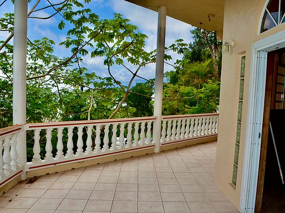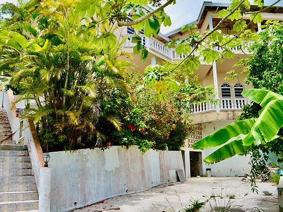 Exquisite lush location on Bordeaux Mountain on St. John offers a huge 5 bed/5 bath w/2 half baths 2-storey concrete duplex. Enjoy serene sea & valley views from expansive breezy decks. The pod-styled design is great for vacation rental stays. The private rain-forest setting creates an exclusive ambiance. The half-acre plot allows for ample off-street parking up the concrete driveway & parking pad, separate entrances for the main house and apartment with enough room to build a pool, create a garden, & small lawn. This solidly built mini-manse needs your flourishes to make it grand. Only serious offers considered.