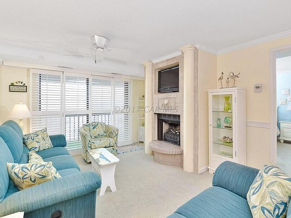 Resort living all year round! This 2 bedroom 2 bath condo has been meticulously maintained and is move-in ready. Strong condo association with low condo fees! Beach-inspired decorating gives the unit an easygoing coastal feel. Open kitchen features granite counter tops, stainless appliances, subway tile lighted backsplash with custom handmade accent tiles, beautiful maple cabinetry, and custom built pantry. Breakfast bar with granite counter top is adjacent to a cozy dining area. Elegantly appointed living room offers new electric fireplace, custom mantel with tile, hand painted accent furniture and access to a balcony with panoramic ocean views. Master bedroom has private access to a balcony, plantation shutters, enlarged closet, and a full bath.