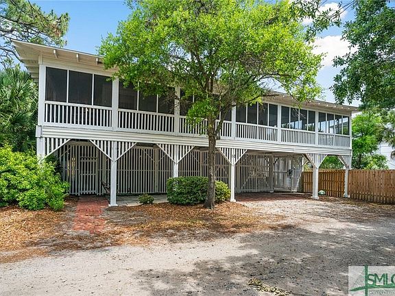 Classic Tybee beach cottage situated on a private drive on the ocean side of Butler. Main level has 3 bedrooms and 2.5 baths with hardwood floors throughout. Original details throughout this historic home, including cast iron sinks in every bedroom and original sink in the kitchen. Deep wrap-around screened porch provides over 1,150 sq. ft. of outdoor living space with access from every room in the house. Two additional bedrooms and a bath plus a laundry room downstairs also not included in square footage. Plenty of space on bottom level to park two cars or for a gaming area. Fully fenced yard with irrigation system. Used only as a family retreat, has never been in the rental market, no STVR. Sold furnished. Home is not in a flood zone.