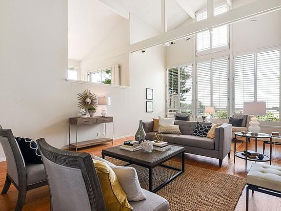 Fabulous Contemporary style home with ultimate privacy- it is your very own tree house! Stunning Bay views. 18 foot ceilings in living room. "Sunset deck" off dining room.