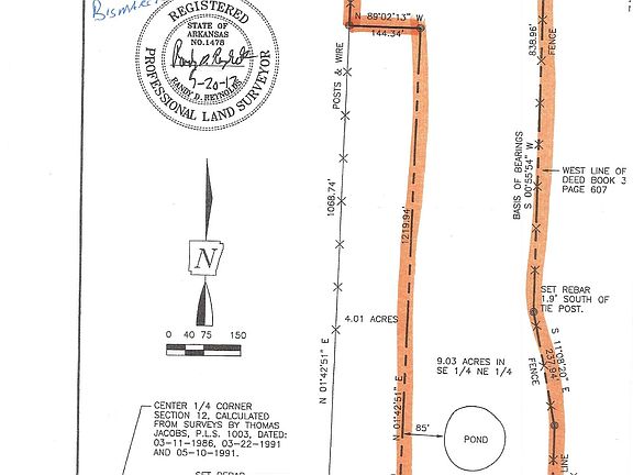 BISMARCK - 10 acres of mixed pasture and wooded with a pond. Great home site just in front of the pond. All utilities at road, which is paved. Seller will pay for driveway and certified septic installation,