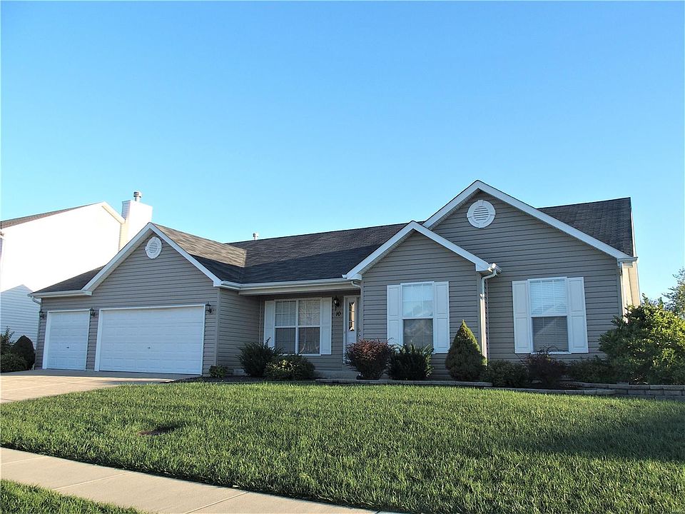 Beautiful great room ranch, only 10 yrs old, with tons of upgrades! Huge vaulted great room w/ lovely gas fireplace, both a formal dining room and separate breakfast room. Spacious kitchen w/ 42" Maple cabinets, center island, walkin pantry, newer dishwasher, custom glass-tile backsplash. Master suite has walkin closet w/ custom built-ins, luxury master bath w/ Jacuzzi tub, separate shower, glass-block window, double sinks, newer flooring in all bathrooms. AMAZING finished lower level will absolutely WOW everyone! Huge recreation room w/ pool table that stays, extra room for more gaming tables, custom wetbar w/ Granite countertops, Espresso cabinets w/ soft-close drawers, room for full size refrigerator, super media room w/ surround speakers all around, full bath, workout room w/ mat flooring and egress window. Huge 3 car garage, level backyard, nice landscaping, sprinkler system, custom mailbox, subdivision pool and ponds. Hurry in or it's gone!