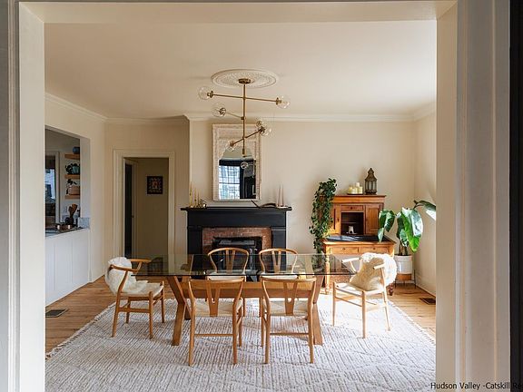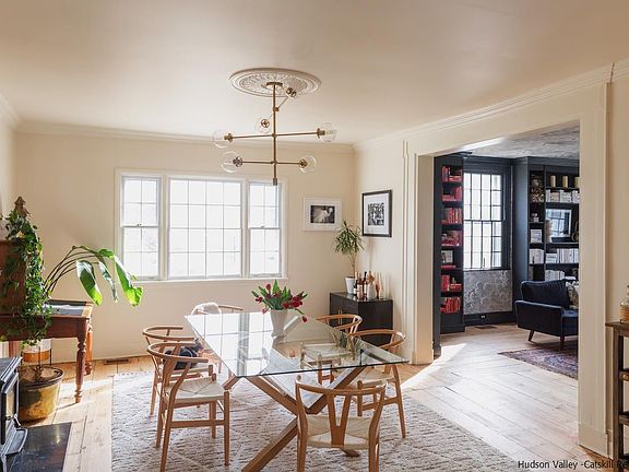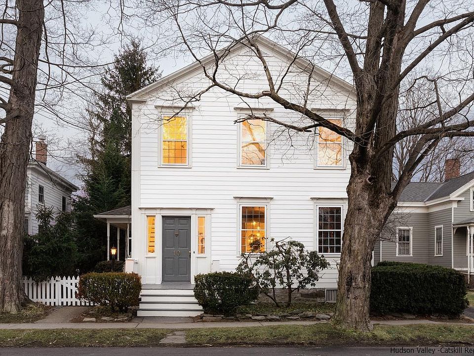 The Mariner’s House is an exquisite, historically significant gem in the village of Kinderhook that was painstakingly renovated by two writers with a distinctive eye for design and historical detail. A genius blend of old and new, the duo worked diligently with local artisans to elevate this charming town and country home. Entering through the original main door of this classic side hall colonial, you are greeted by 9-foot ceilings and, to the right, a living room-meets-library with custom-built bookshelves and elegant moldings. The dining room is light-filled and grand, with a new wood stove installed after the rehabilitation of the original coal fireplace chimney. An open-plan kitchen with custom cabinets, top-quality appliances, marble countertops, and a 36” fireclay farmhouse sink leads, through reclaimed early 1900s French café doors, to a spacious walk-in pantry and laundry room. A delightful half bath with whimsical wallpaper completes the first floor. Upstairs, through a wide hallway brightly lit by an original six-over-six window, you reach the sun-splashed primary bedroom with three large windows and a full bath with a heated marble floor. There are two additional bedrooms and a dreamy bathroom with a seven-foot copper bathtub, a double marble vanity, and a water closet with pocket doors. Attached to the house, facing the back garden, is a one-bedroom maisonette with a living room, kitchen, and full bath. Ideal as a guest house, studio, or short-term rental with a separate entrance, this space can be easily connected to the main house if desired. No detail was overlooked during this gut renovation, including, but not limited to, restoring the wide plank floors and original windows (outfitted with new storms with a lifetime warranty), using Farrow & Ball paints throughout, and importing wallpaper from London-based Cole & Sons. Other upgrades include a new furnace, 200-Amp electric service, new water heaters, installation of new ductwork, central air, whole-house water filtration system, and all new appliances. The Mariner's House is just half a block from the center of the village of Kinderhook, with its beloved restaurants, galleries, shops, and seasonal farm market, and only 10 minutes from Hudson, 25 minutes from Albany, and two and a half hours from New York City and Boston.