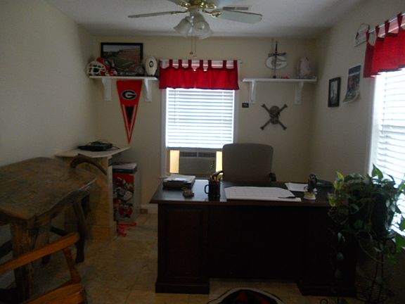 Beautiful open floor plan on quiet street. Big eat in kitchen with tile floors in kitchen, family room, foyer and study.Study could be 4th bedroom. Beautiful archways through living area into large den area. Carpet in bedrooms. Large fenced in yard, privacy fence and two nice size storage sheds.
