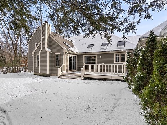 Located in the sought-after Algonquian Hills, this beautifully maintained, gracious, sunny home has a generous foyer that leads to an open floor plan emphasizing the spaciousness of each room from the large, entertainment-sized gourmet cherry kitchen with sky lights, vaulted ceiling, and a beautiful over-sized granite island, to the dining area which opens to the Living Room. The kitchen & Living Room each have sliders leading to the mahogany deck that overlooks conservation land. The Living Room also boasts a beautiful fireplace, built in bookcases, vaulted ceiling, and space for all to relax. A coveted first floor Main Bedroom En Suite, a large Parlor/office/family room with built in book cases & a bay window, and laundry room complete this level.The kitchen has direct access to the 2 car garage. There are gleaming hardwood floors throughout the first floor. Upstairs are 3 very large, light filled bedrooms, a full bath and plenty of closet space. Neutral decor. Welcome Home!
