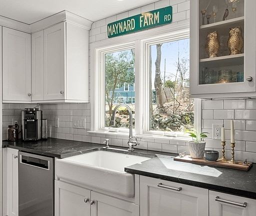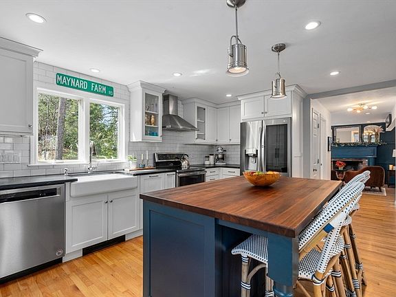 4-bedroom colonial is anything but ordinary, blending charm with modern updates. The expansive kitchen features endless cabinetry, a massive island with a beverage cooler, stainless steel appliances, and stunning soapstone and walnut countertops flowing seamlessly into the dining area with custom seating. The open floor plan creates a natural connection between rooms, including a cozy living room with a custom fireplace and access to a spacious deck—perfect for entertaining! Both updated baths are fun and offer a bit of luxury: the first floor boasts a glass-enclosed shower, while upstairs, you’ll find a soaking tub made for relaxation. The primary bedroom offers space galore with two closets. Downstairs, enjoy a finished basement with LVP flooring, a family room, wet bar, laundry, sound studio with acoustic sound-absorbing panels and a workshop! A Reeds Ferry shed adds even more storage. Tucked on a cul-de-sac, this neighborhood is one you’ll never want to leave. SEE UPDATES LIST