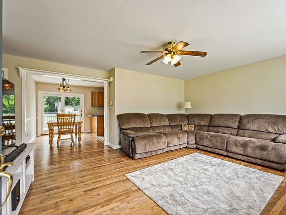 Move-in condition 3 BR, 1-1/2 bath ranch, NOT IN FLOOD ZONE, FRESHLY PAINTED INSIDE AND OUT in a light, neutral color; beautiful hardwood floors recently refinished, sliders open to a spacious deck overlooking a large, flat yard; there is an enclosed workshop 13x13 with HVAC behind the garage; septic 14 years old; refrigerator in garage included